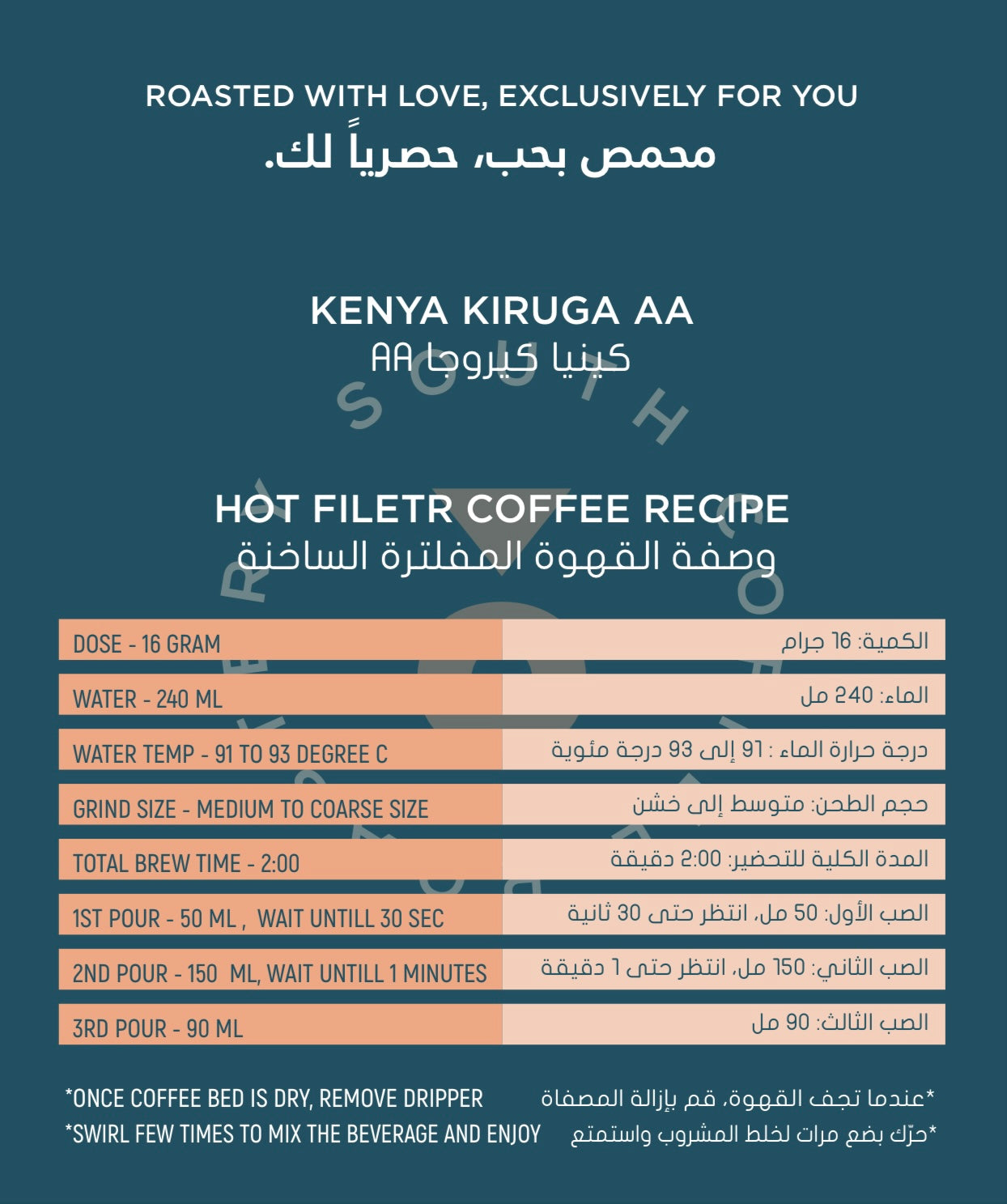 The coffee from Kenya’s Othaya offers a unique and exciting sensory experience. It features refreshing lychee berry notes that add a distinctive and vibrant flavor to the cup. This coffee is well-balanced and complex, with pronounced blackberry and black tea notes that create layers of depth and an exquisite composition. The bright fruity acidity shines through, making it perfect for those who appreciate lively and refreshing coffee. Enjoy its smooth and balanced texture, and get ready for an unforgettable tasting journey in every cup.